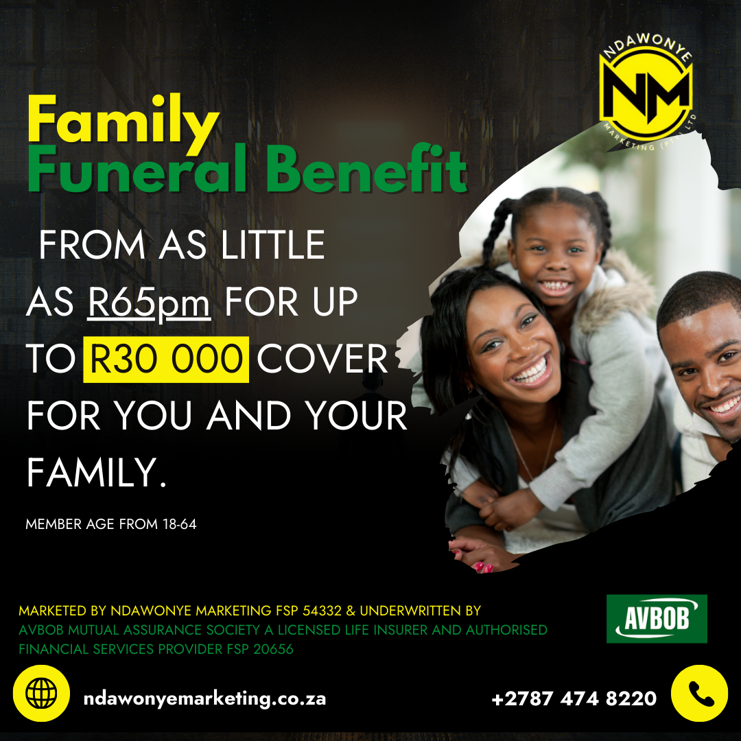 At NDAWONYE MARKETING, we are proud to partner with top underwriters such as Safrican, African Unity, and Sanlam to bring you a range of insurance products tailored to your needs. Whether you are looking for funeral cover, life insurance, or other financial products, we have the expertise and commitment to guide you every step of the way.